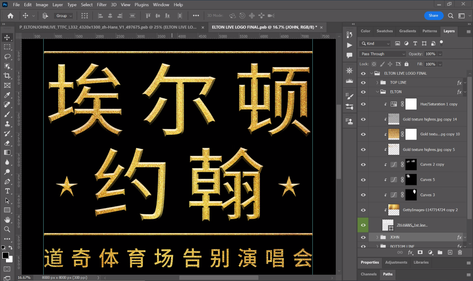 For the logo, I used Illustrator for the fonts, and Photoshop to layer textures, colors, and brightness, giving it a vibrant and dynamic look. Using client-provided photography, and the logos I created, I made the final key art. I retouched images of Elton John’s concert to enhance quality and consistency. I was also responsible for the placement and sizing of the logos and key art to ensure maximum visual aesthetics.